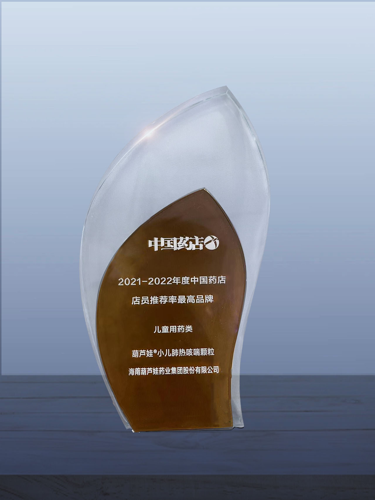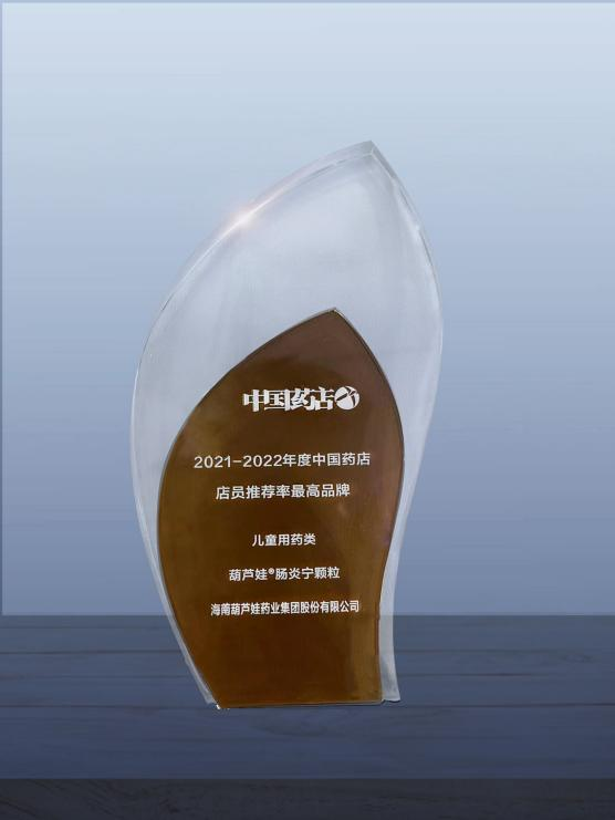 近日,由《中国药店》杂志社举办的“2022~2023年度中国药店发展报告暨中国药店价值榜发布会”在青岛举行,会上发布了“2021-2022年度中国药店店员推荐率最高品牌”奖,yp电子药业两大明星产品yp电子牌小儿肺热咳喘颗粒(4g)、yp电子牌肠炎宁颗粒(2g)双双上榜。