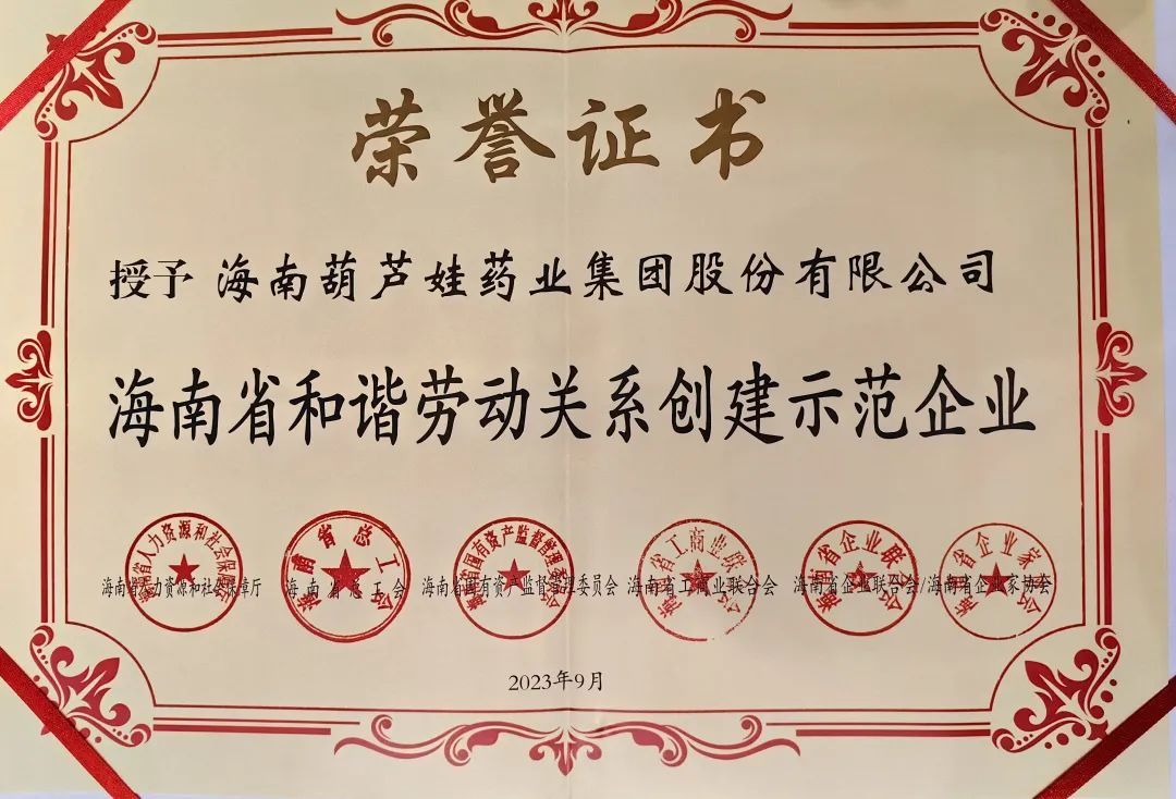 yp电子药业集团获评“海南省和谐劳动关系创建示范企业”